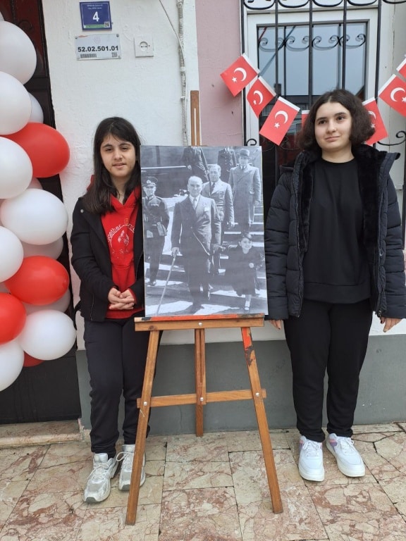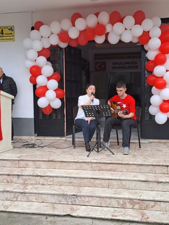 Okulumuz öğrencilerinden Emin Telât TARAKÇI ve Halk Eğitim Merkezi müzik öğretmeni Hatice ONGUN ile birlikte gitar eşliğinde şarkılar (Bu kalp seni unutur mu, Biz Atatürk Gençleriyiz) seslendirdiler.
